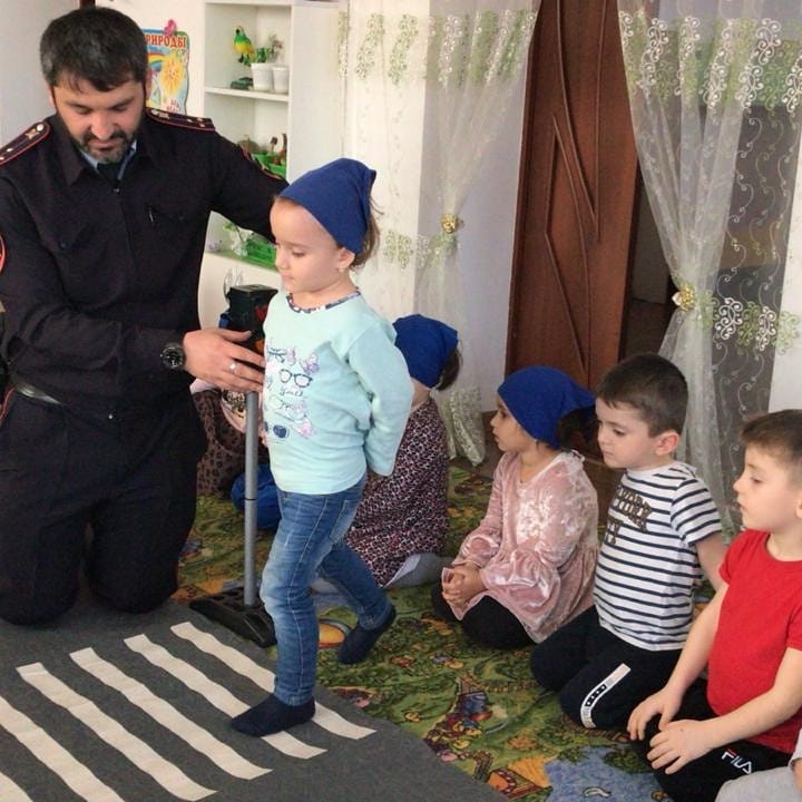04.02.2020С целью профилактики детского дорожно-транспортного травматизма, сотрудниками ОГИБДД ОМВД России по Урус-Мартановскому району, была проведена беседа с детьми младшей группы "Воробушки"